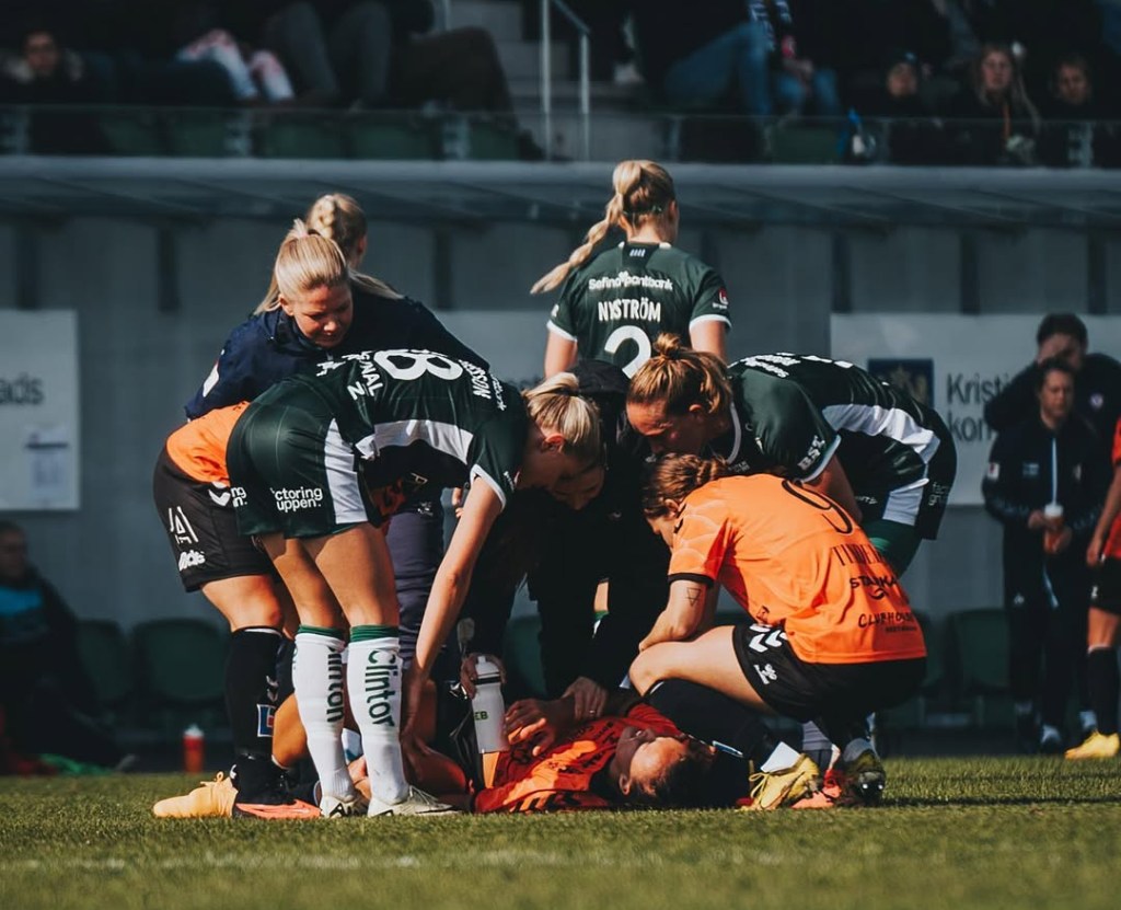 The Kristianstads DFF physio rushed onto the pitch and tested to see if Sayer might have ruptured her ACL. “She knew immediately.” Sayer says. “But she couldn’t tell me. She didn’t know how to tell me, or whether she should tell me. There was no reason to say it at that point.”